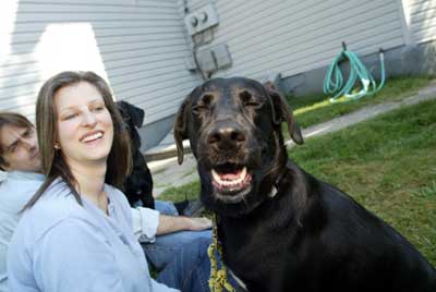 He's a very happy dog who loves going to obedience school. Someday we'd love